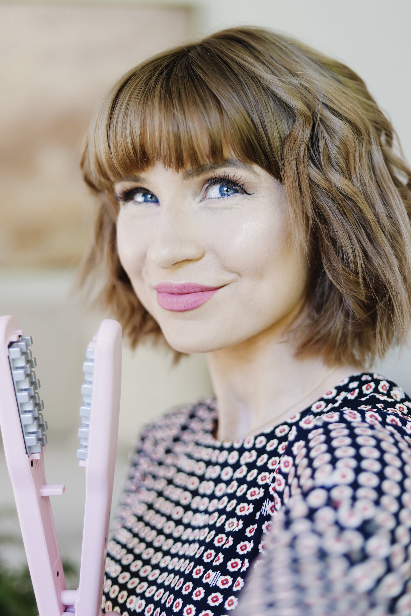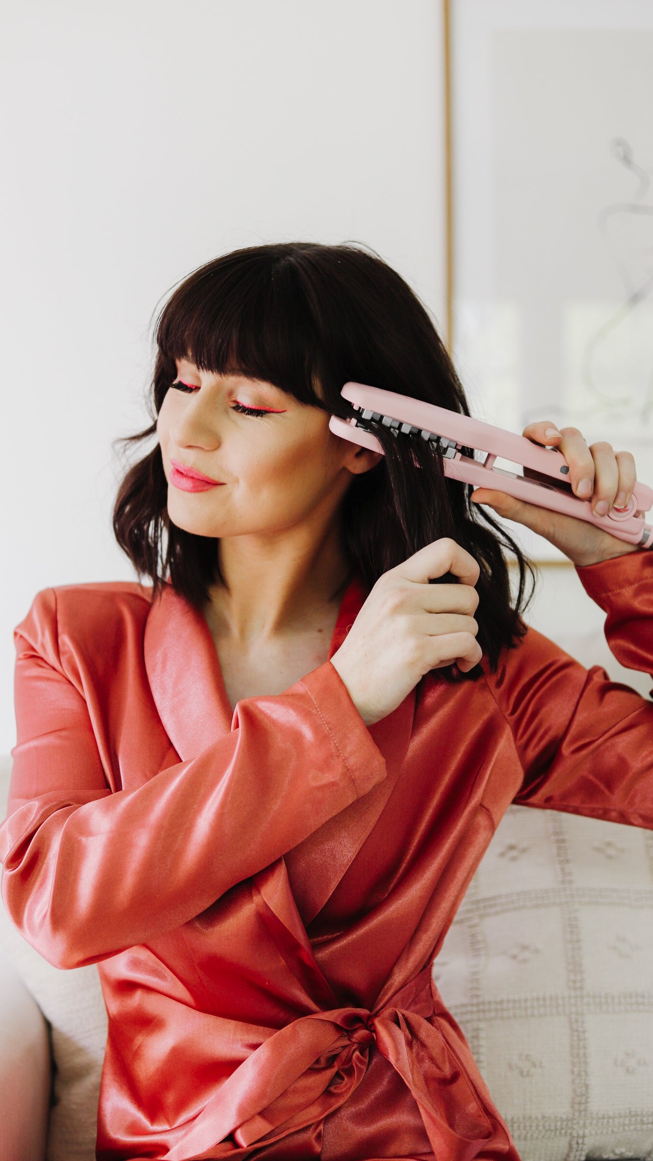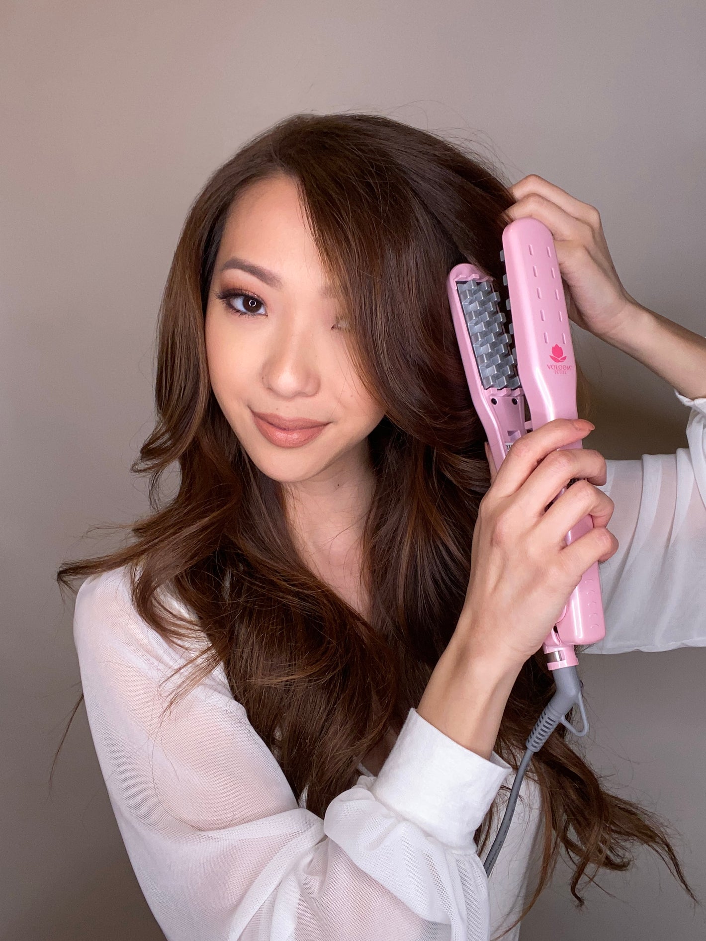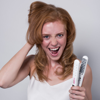 If you just want crown volume or if you want even more volume on your crown, try this: Make a section of hair a couple of inches wide at the top of your head where you want more height. If you have a middle part, take an inch-wide section along both sides of your part and make a single section of hair. Hold this section of hair straight up from the top of your head. Using a lower temperature than normal (20 -30 degrees below what you would usually use), use VOLOOM on this section close to the scalp, but do not clamp the plates together completely. Hold in this position for a second or two. Unclamp. The inner- most part of the section in the middle of your head will have height, but little or no texture. If you want even more height, you might try using a heat protection or styling spray on this section.