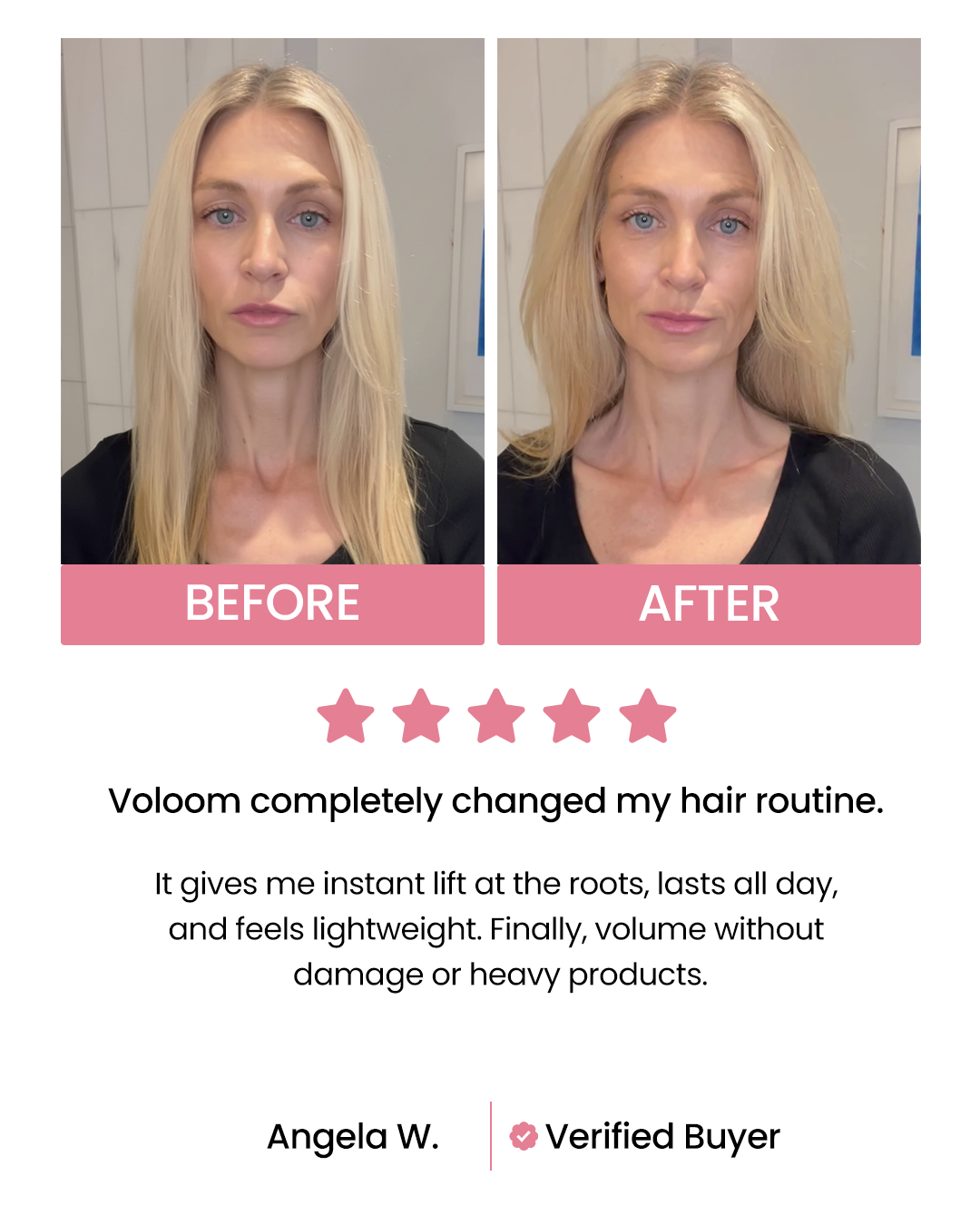 Unlike teasing or heavy products, Voloom adds volume without damage. The ceramic technology protects your strands, giving you lift without breakage or frizz.